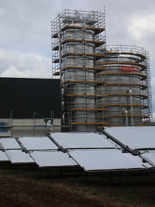 Um die Potenziale und Optionen zu erweitern und die Leistungsfähigkeit des Solarthermie-Parks als Komponente im Wärmenetz maximal auszunutzen, wird zusätzlich ein Großwärmespeicher gebaut.