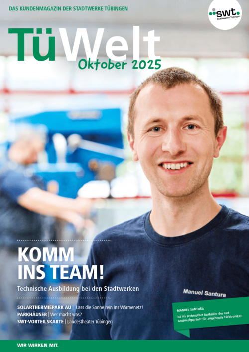 Wir sind Energielieferanten und Busmanager, leidenschaftliche Klimaschützerinnen, Schwimmfans und schwäbisch-genaue Tüftler – wir sind die Menschen hinter den Produkten und Dienstleistungen der swt und arbeiten Tag für Tag für Tübingen, seine Bewohnerinnen und Bewohner. Davon erzählen wir in unserem Blog und Podcast. Wir blicken hinter die Kulissen und über den Tellerrand, recherchieren zu aktuellen Fragen und tauchen in die Historie ein.