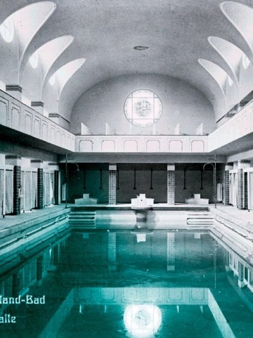 (3) Das 1914 eröffnete Uhlandbad galt als technische Sensation, denn das Beckenwasser wurde über eine Fernleitung mit Wärme des städtischen Gaswerks erhitzt.