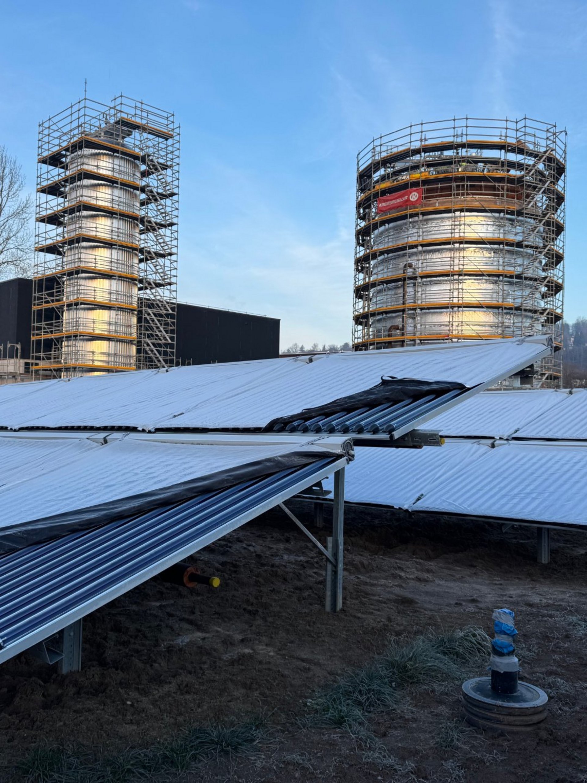 Montagebeginn Solarthermiefeld