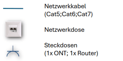 - Vom Gf-AP geht es über den optischen Netzanschluss (ONT) weiter über die hausinterne Netzwerkverkabelung (Cat5, Cat6, Cat7).