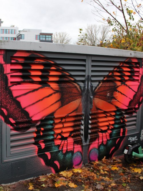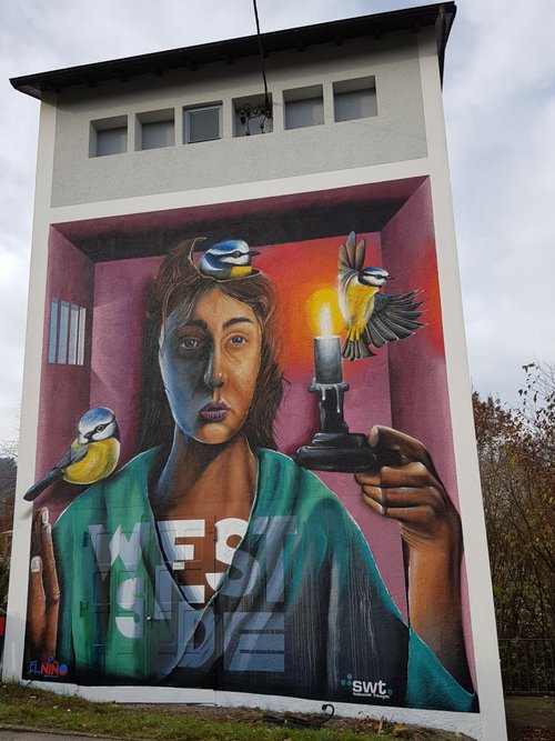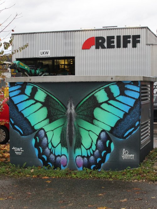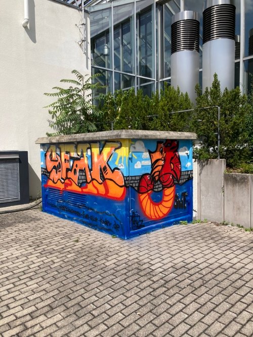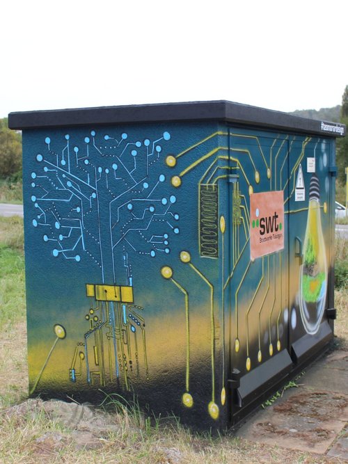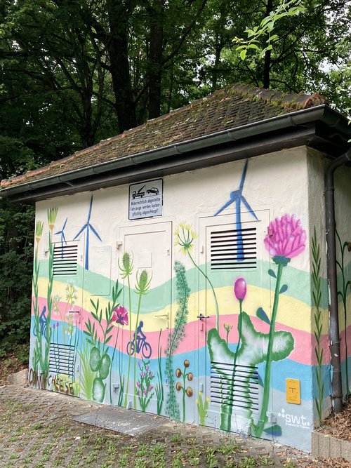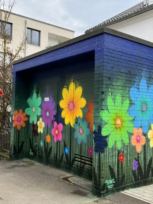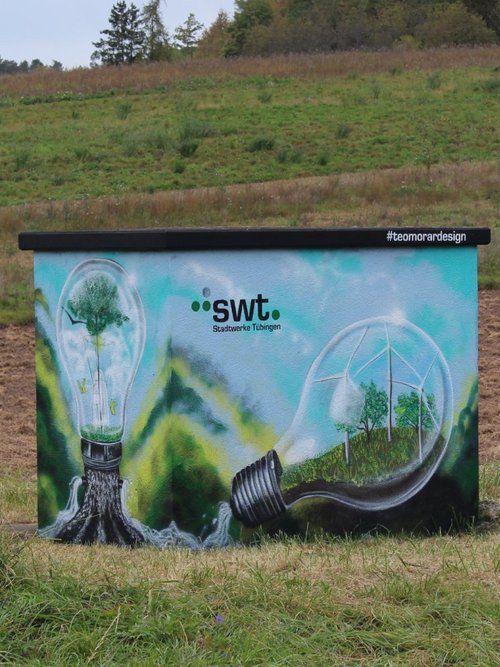 Mit Graffiti für ein schönes und buntes Stadtbild! Seit 2017 setzen die Stadtwerke Tübingen auf kreative Streetart, um Schmierereien an ihren Anlagen durch kunstvolle Gestaltung zu ersetzen. In Zusammenarbeit mit renommierten Graffiti-Künstlern wie Jeroo, Looven, Mango, El Niño und weiteren Talenten aus der Region entstehen seither farbenfrohe Kunstwerke, die sich harmonisch in ihre Umgebung einfügen. Die positiven Rückmeldungen aus der Bevölkerung bestärken uns in diesem Engagement – und wir machen weiter, um Tübingen noch bunter zu gestalten.