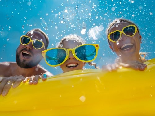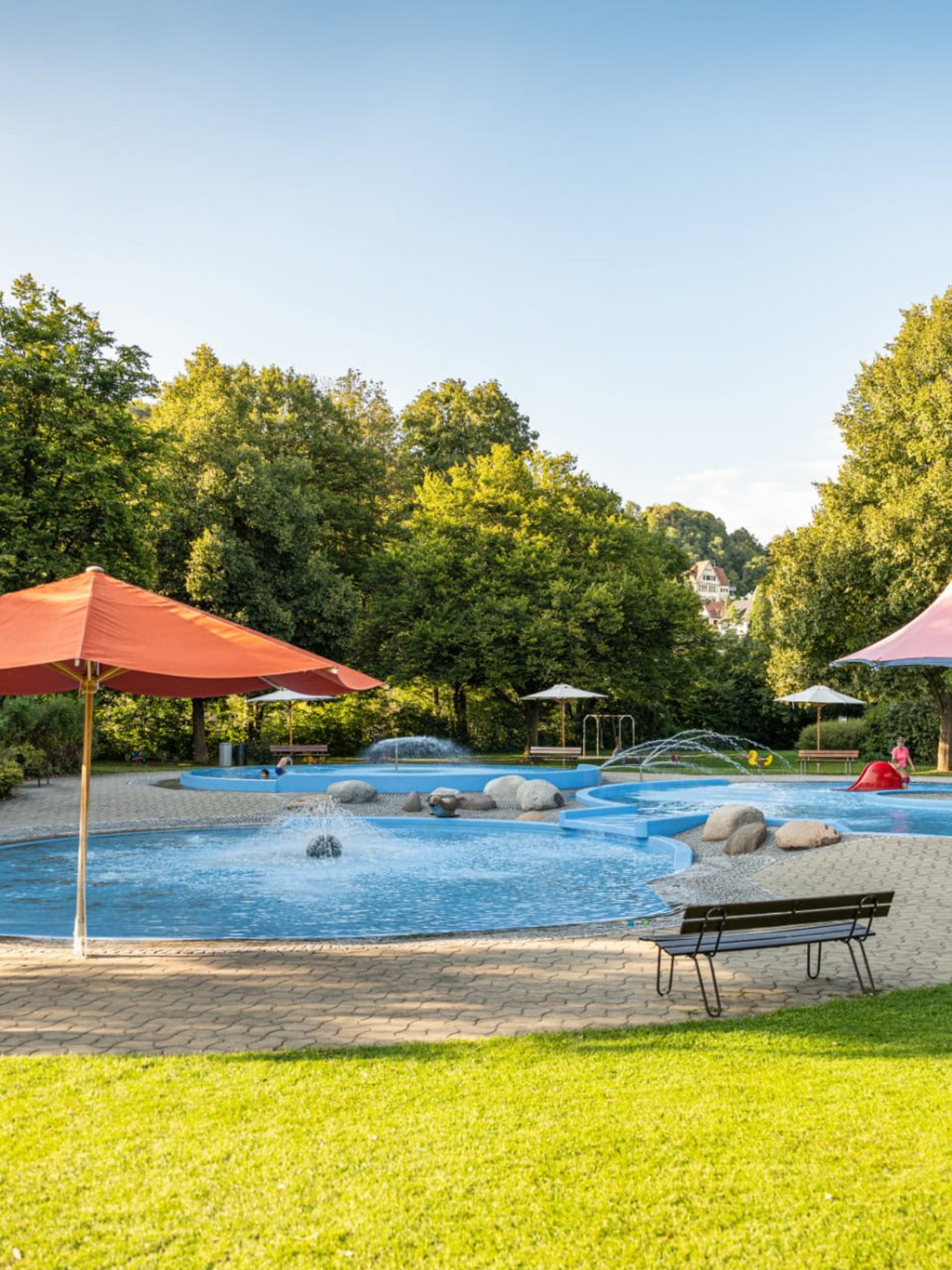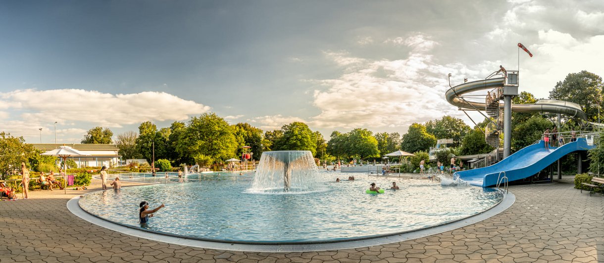 Eine Groß- und eine Breitrutsche, ein Wasserpilz, ein Wasserfall, Wasserspeier, vier Massagedüsen und eine Unterwassersitzbank machen das Baden zu einem abwechslungsreichen Freizeitvergnügen.
