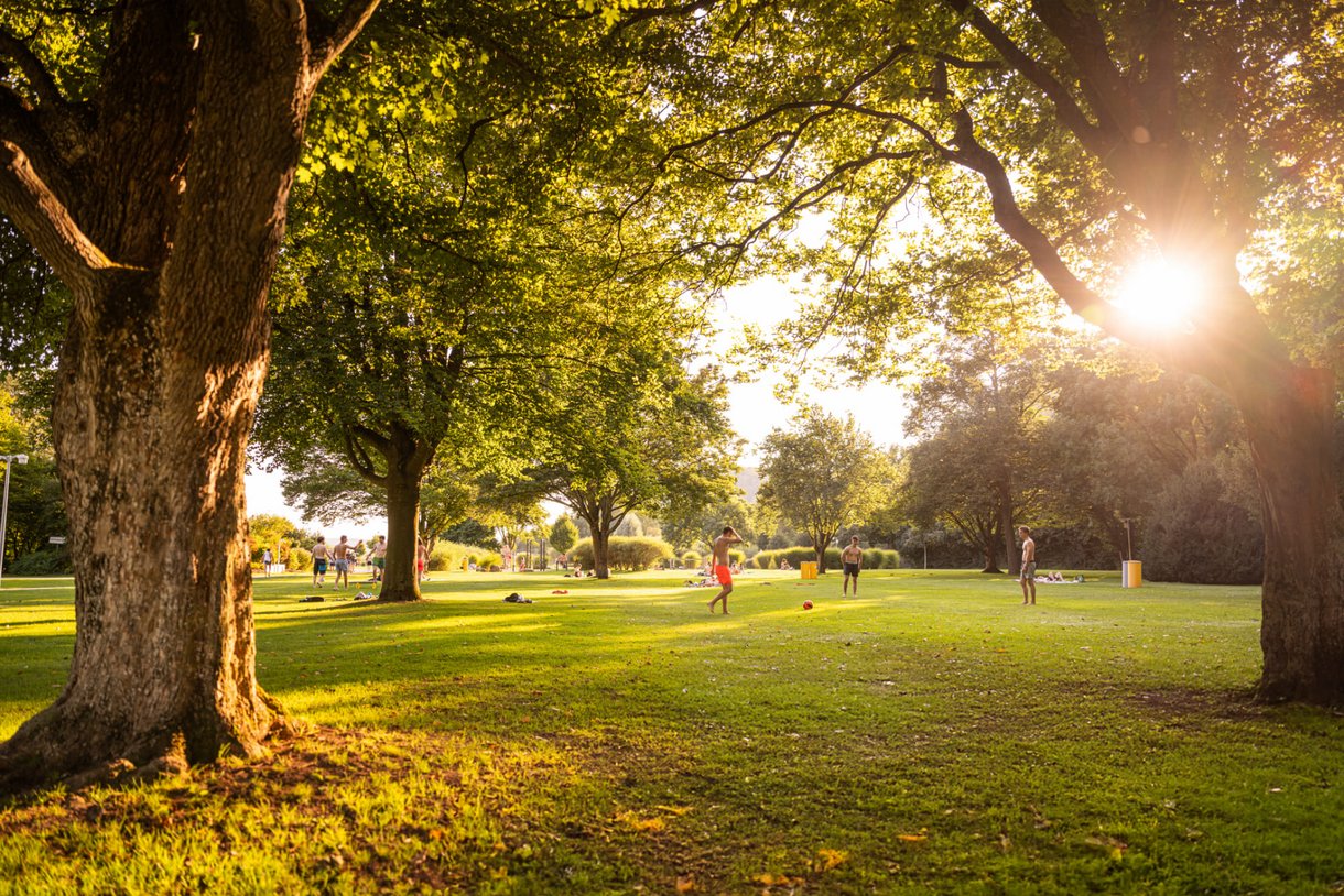 Die weitläufige Liegewiese bietet zusätzlich einen geschützten FKK-Bereich.