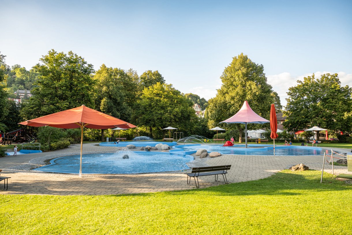 Im Nichtschwimmerbecken können auch Besucher ohne Schwimmkenntnisse entspannen und sicher baden. Die Wassertemperatur schwankt je nach Wetterlage.