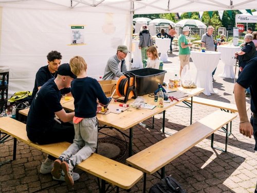 Die Auszubildenden der Stadtwerke Tübingen laden am Bastelstand zum kreativen Mitmachen ein.