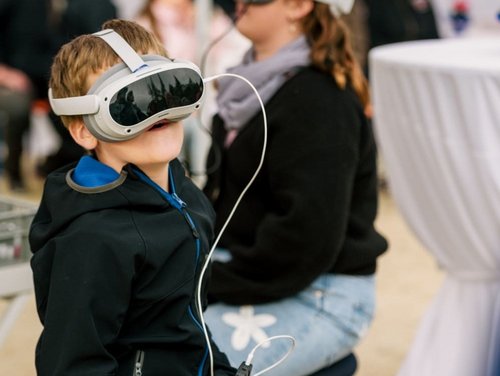 Mit VR-Brillen können Sie virtuell in die Gondel einer baugleichen Vestas-Windkraftanlage aufsteigen und einen beeindruckenden 360-Grad-Rundumblick erleben.