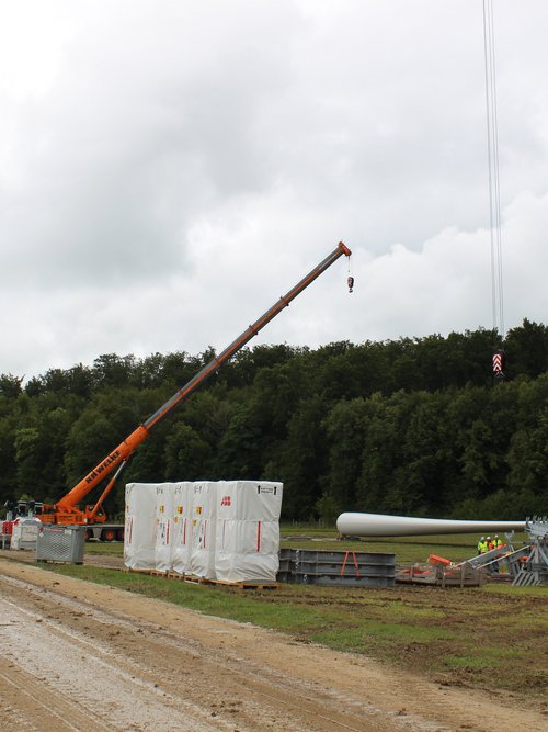 Anlieferung der Bauteile für die Windenergieanlagen und Beginn des Anlagenaufbaus an den fünf Standorten.