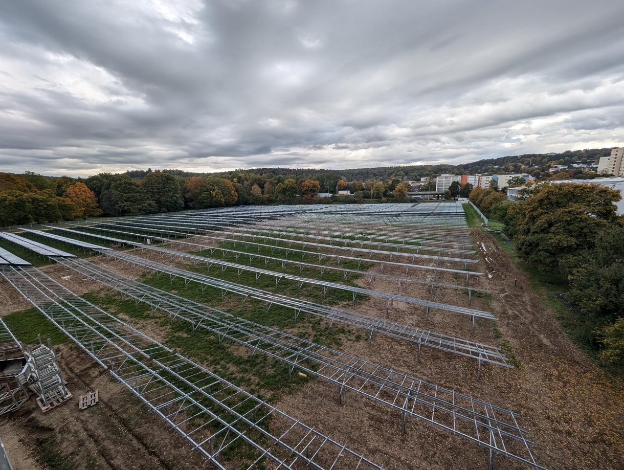 Montagebeginn Solarthermiefeld