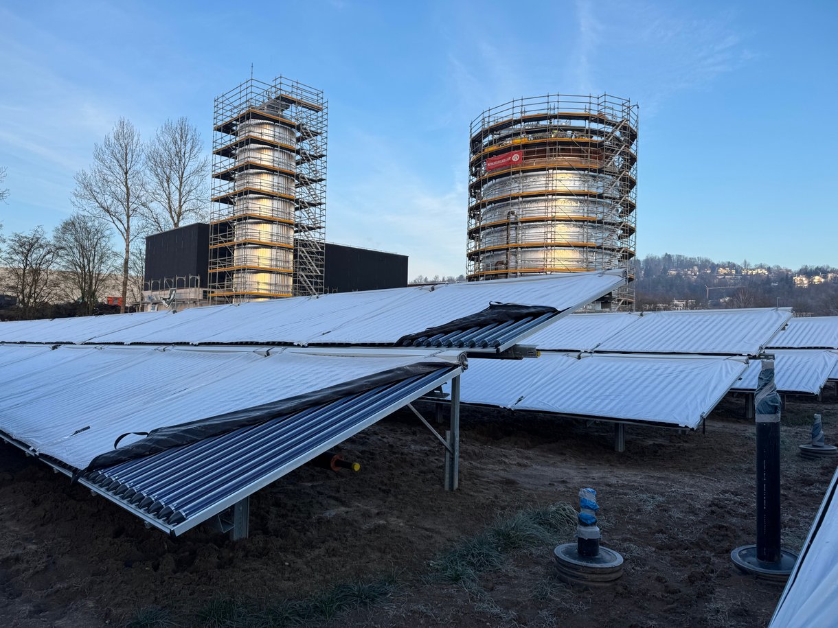 Um die Potenziale und Optionen zu erweitern und die Leistungsfähigkeit des Solarthermie-Parks als Komponente im Wärmenetz maximal auszunutzen, wird zusätzlich ein Großwärmespeicher gebaut.