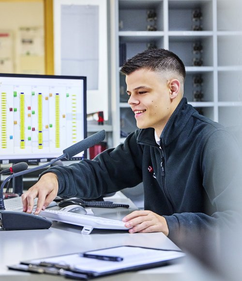 40 Prozent der Zeit verbringe ich in der Leitstelle, die den Busverkehr koordiniert. Da bin ich Ansprechpartner für die Fahrer draußen und helfe, Probleme zu lösen. So bekomme ich mit, was in allen Bussen und im Verkehr insgesamt passiert. Die Abwechslung macht Spaß.