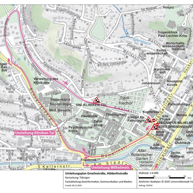 Weiträumige Umleitung in Richtung Kliniken Tal | Umleitungen auf TüBus Linien 5 und N94 | Die Stadtwerke Tübingen nehmen diese Woche zwei Abtrennungen…