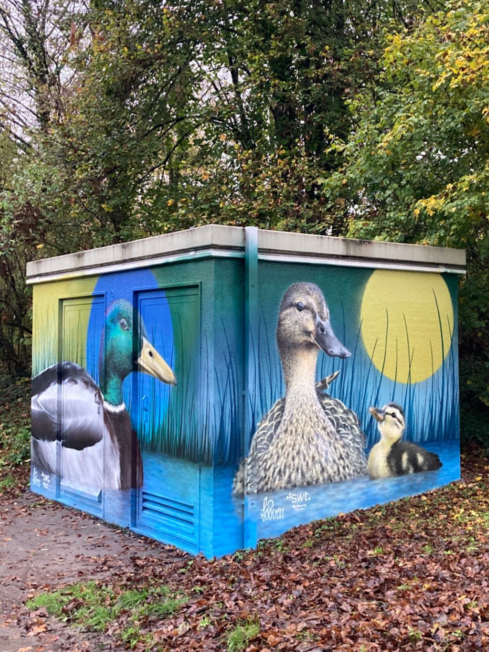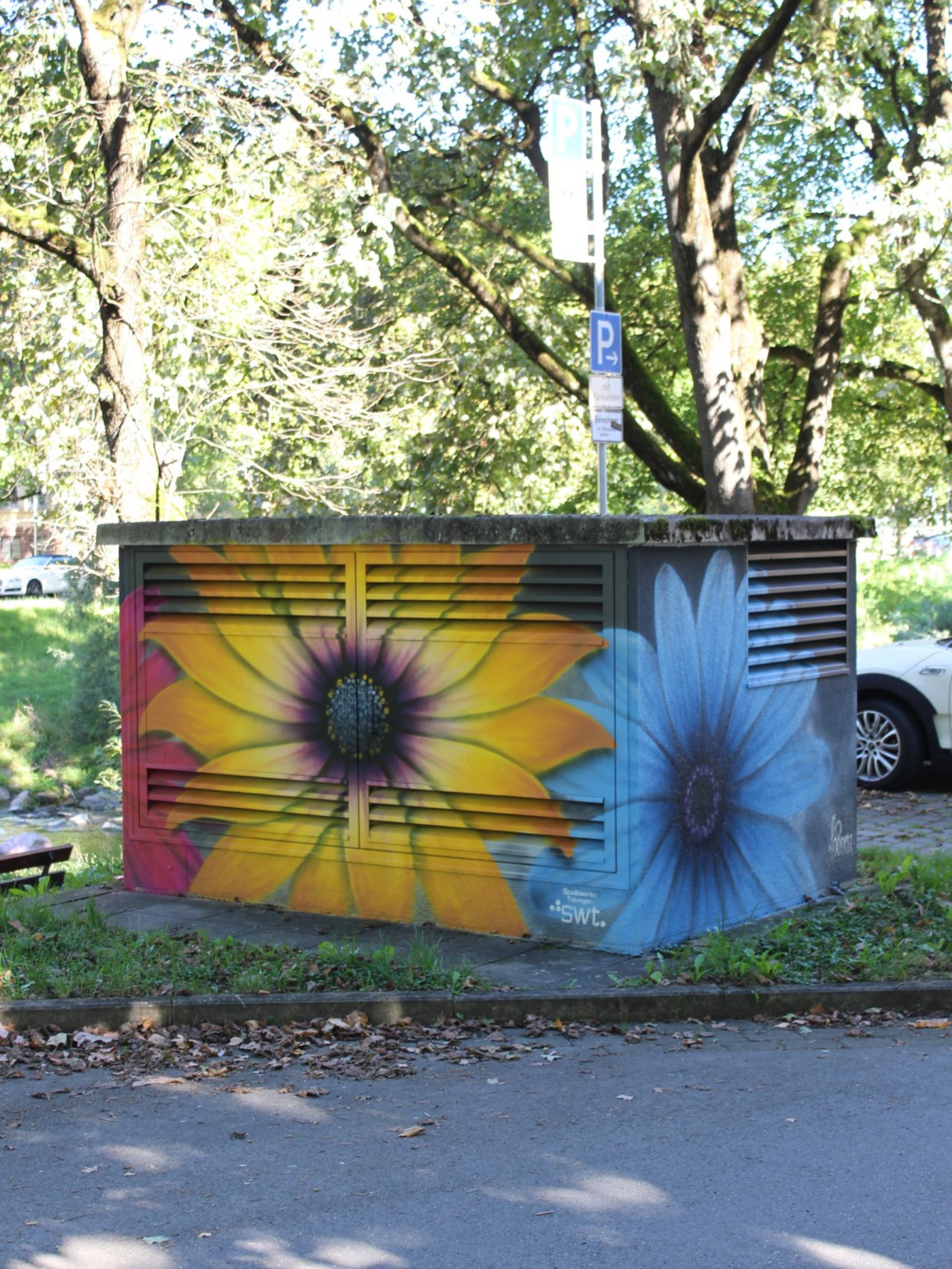 Mit Graffiti für ein schönes und buntes Stadtbild! Seit 2017 setzen die Stadtwerke Tübingen auf kreative Streetart, um Schmierereien an ihren Anlagen durch kunstvolle Gestaltung zu ersetzen. In Zusammenarbeit mit renommierten Graffiti-Künstlern wie Jeroo, Looven, Mango, El Niño und weiteren Talenten aus der Region entstehen seither farbenfrohe Kunstwerke, die sich harmonisch in ihre Umgebung einfügen. Die positiven Rückmeldungen aus der Bevölkerung bestärken uns in diesem Engagement – und wir machen weiter, um Tübingen noch bunter zu gestalten.